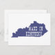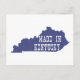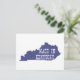The shape of the the state of Kentucky filled in dark blue and the words Made in Kentucky in bold white letters on this postcard is a great way to remind a Kentuckian of where they were born and raised.