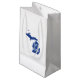 Featuring the silhouette shape of the state of Michigan filled in with a solid blue background and the word “made in “ written inside this is a great gift bag for giving present to any Michigander.