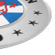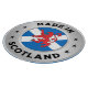 A design which features a faux silver ring, which has been designed to look like the outer and inner have been chamfered. In the center of the ring, is the Scottish flag and the red lion rampant. Around the ring is the text "Made In Scotland" along with 6 decorative stars.