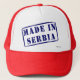 Made In Serbia! Are you from Serbia? Do you have a friend or family member who loves Serbia? If so, this "Made In..." hat is exactly the gift that you're looking for! The design features a weathered "Made in Serbia" in navy stencil-like lettering surrounded by a navy rounded rectangle.