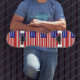 Our unique design was inspired by the official American flag with red and white horizontal stripes plus we added the text typography phrase in white on top of the blue section that normally has stars in it.