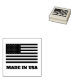 Made in USA custom rubber stamp with American flag. Patriotic design with US flag. Handy for marking products, labels and more.