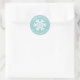 A simple blue and white snowflake sticker with the greeting, Made with love. Personalise it with your family name. Fun for your homemade or handmade Christmas neighbour treats and gifts. Designed for you by Blackberry Boulevard.