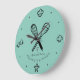 Fun and modern bakery clock design features an assortment of our hand-drawn baking illustrations (Cupcake, chef hat, oven mitts, and gingerbread cookies representing the 12, 3, 6, and 9 on the clock. A stylised whisk and spoon are crossing each other in the centre of the clock. The words "Made with love are written in a modern hand-written style font. Customise with the name. Teal blue background and black elements create a modern look. artwork by Moodthology. You can customise the background colour, logo colour, font, and layout for your own personal preference. Perfect for the home bakery!