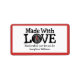 This adorable sticker label features Made with Love on the left side, with the O having two shadow figures forming a heart shape by joining hands. The heart has been coloured red for emphasis. Customise with your personal or business information and use it as a canning label, handmade craft tag, or enter your contact info and use as a return address label!