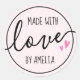 Round stickers with pink (or custom colour) hearts, the text "made with love" and your name on a pale pink or custom colour background. The word "love" is written in an elegant calligraphy script font. Use as envelope seals, stickers for gifts and favours, product packaging etc. Follow us on Facebook: @businessstationery for more products, news, sales and more.