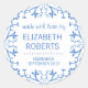 Beautiful blue and white decorative pattern. Add your own name and text. You can either leave the words simply as "Homemade" or change it to read Homemade Rasberry Jam or the name of whatever is in the jar!