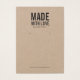 Rustic kraft earring display card featuring the words "Made with Love" in bold font and a stylish script for your name or store name in dark grey colour is perfect for handmade or vintage jewellery. You can move the "Hole Guide" layer on the front up or down as desired or delete it.