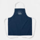 Modern and stylish custom navy blue apron for home kitchen cooks. Design features a cute typographic design with a custom name "Kitchen" and a rolling pin with "made with love" displayed in the middle.