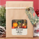 Made with love product stickers with a photograph of a thanksgiving harvest, set on a rustic wooden table. Pumpkin, potatoes, squash etc... make up this bountiful collection of food. Colourful autumn leaves surround the cornucopia basket.