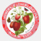 Personalised homemade jam round stickers for jars of homemade strawberry jam and other preserve products. Featuring a red and pink heart border with wild strawberries and flowers with butterflies. The easy to use template allows your to personalise the text that currently reads "HOMEMADE STRAWBERRY JAM", the date the jam was made, who it was made by and the test "MADE WITH LOVE".