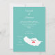 Stylish destination Rhodes wedding invitation for couples getting married abroad in the beautiful Portuguese Island of Madeira which is shown in a map silhouette with sweet red love hearts. In tones of teal and white with a lacey patterned circle on the back, very pretty and easy to customise with your wedding details.
