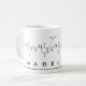 Madelaine spelled out in amino acids as M A D E L A I N E (Methionine Alanine Aspartic acid Glutamic acid Leucine Alanine Isoleucine Asparagine Glutamic acid) on a mug for the scientist in you.