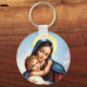 This gorgeous Madonna and Child depiction is one of our personal favourites. The beautiful Virgin Mary has a halo and is dressed in blue and red robes. The Christ child is seated on the Virgin Mother’s lap and has his arm around her. He has a little halo of his own. Behind them are blue skies and clouds. A truly special Madonna and child necklace either to keep close to your own heart or to present as a gift to someone special.