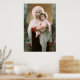 This is a stunning 20th century depiction of the Madonna and child.  The Madonna is holding the Christ child in her arms and both have halos. A lovely Madonna and child poster.
