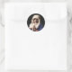 This is a beautiful 16th century depiction of the Virgin Mary. She is wearing white, blue and red robes, and hold her hands together in prayer.