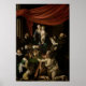 Discover the grandeur and spiritual symbolism of Caravaggio’s Madonna of the Rosary (1607), a monumental Baroque altarpiece housed in the Kunsthistorisches Museum, Vienna. This painting features the Virgin Mary enthroned, giving a rosary to Saint Dominic, who is surrounded by Dominicans and faithful kneeling in devotion. The composition highlights key Dominican saints, including Saint Peter Martyr, identifiable by his scarred forehead, and Saint Thomas Aquinas. The large red drapery and column in the background evoke the patronage of the Colonna family, possibly linked to the commissioner Luigi Carafa-Colonna. Painted during Caravaggio’s time in Naples, the work reflects the promotion of the Feast of the Rosary, established after the 1571 Battle of Lepanto. The donor, depicted kneeling at the left, gazes directly at the viewer, seeking protection under Saint Dominic’s cloak. Caravaggio’s dramatic chiaroscuro and naturalistic figures emphasize the sacred and human dimensions of the scene. This museum-quality print is perfect for art lovers and collectors seeking iconic Italian Baroque religious art and rich historical context for their home or office.