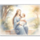 I tried to create a delicate, intense, luminous portrait of Saint Mary, Madonna, and the Child Jesus, with a natural background of plants and flowers. Computer graphic with painting effect, watercolor, between the traditional and the modern Art.