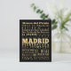 This Madrid City typography art of Spain lists the famous attractions of the city. Modern vintage look. Stylish look and Elegant.