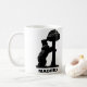 This white ceramic mug features a graphic of the statue Bear and the Madrono Tree, the symbol of Madrid in Sol Square, Puerta del Sol, Madrid, Spain.