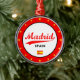 Badge of Madrid with flag of Spain colors, rounded shape.
