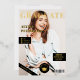 a fun magazine cover style graduation announcement , with 2 photos, and bold type in black and real gold foil, here s the scoop, let's celebrate the graduate.