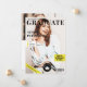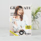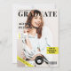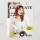 a fun magazine cover style graduation announcement , with 2 photos, and bold type in black and yellow, here s the scoop, let's celebrate the graduate.