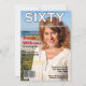 Magazine style 60th birthday party invitation, with the title Sixty and Spectacular! Add your own photo as the cover image, and edit the information in the space provided. Click "customise" to change font or text colours, or to adjust text placement. Contact us at funt-shirts@hotmail.com with any custom requests.