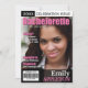 Bachelorette Party invitations that look like the cover of a magazine. Personalise with the Bride-to-be's photo, fiance, proposal, and party details. For best results, use a high resolution photo displaying the whole to mid of the upper half of the bride-to-be. Black & white or colour photographs may be used.