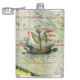 Magellans ship Victoria, Antique Map Pacific Ocean Hip Flask
