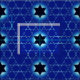 A simple blue-toned, fractal image of multiple instances of a Magen David (Star of David) formed by intersecting glass- or crystal-like lines, the central star is filled with dark blue.