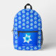 Features a tiled, white, fractal Star of David on a blue background. Customise by adding your own text.