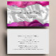 This elegant modern business card features an image of white silk, framed on the top and bottom by magenta watercolor agate borders trimmed with sparkly silver faux glitter. Personalise it with your name in off-black handwriting-style script and your business information in sans serif font. The reverse is a coordinating shade of solid pale grey. Ideal for hair stylists, makeup artists and aestheticians