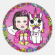 Magenta Asian Fairy and Unicorn Classic Round Sticker