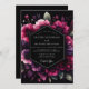 Embrace a dramatic and romantic mood with this stunning floral composition. Against a deep black backdrop, lush blossoms burst forth in vibrant shades of magenta, fuchsia, and rich purple. Subtle hints of soft green foliage add depth to the arrangement, evoking a sense of moody, botanical elegance perfect for a sophisticated evening.