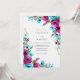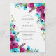 Vibrant fuchsia and electric blue blossoms burst across this design with lush green foliage. The artistic brushstroke effect evokes a feeling of passionate romance. This design features a striking color palette perfect for a bold statement.