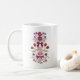 Boho and rustic mug featuring hand drawn illustration of bows and flowers in magenta.