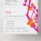 Magenta pink branch with vibrant orange flowers initials wedding all in one invitation with tear off detachable RSVP. A lovely design for your wedding featuring a cascading magenta fuchsia pink branch with orange blossoms.