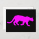 A magenta cougar walks across a sleek black background from left to right in profile. Magenta is a bold colour that can only exist in a mixture of equal parts of true blue and pure red. In colour theory the meaning of colour magenta includes uniqueness, individuality and creativity, and is associated with the visual arts. The cougar or puma is a powerful and often elusive animal; once endangered, cougars are making a comeback. The cougar is the largest of the small cat family. She's related more to your house cat than to lions and tigers. Pumas cannot roar but they can make all kinds of bone-chilling sounds, screaming in the night and so on, one reason this cat is also called the mountain screamer. These are New World animals native to the west coast of North America through Mexico and central America, and in the Andes, the great mountain range of South America. Spritiually, the cougar represents independence, patience, observation, subtlety and courage. You can add text or change the background colour on this design by using the customise option. This magenta cougar silhouette design is exclusive to Sylvia Rose. Visit me on Twitter @Sylvia_FineArt. Have a happy day.