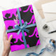 Magenta silhouette of a cougar, aka mountain lion, mountain cat, puma, panther, repeating pattern on black background. You can use the "customise" feature to make the image(s) larger or smaller if desired. The cougar is a powerful totem or animal spirit guide, representing courage, independence, sensuality, patience and enigma. The colour magenta is an exactly equal blend of red and blue; this colour is associated with uniqueness, balance and creative expression.