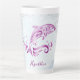 Enjoy your latte or morning coffee with a Magenta Dolphin Personalised Latte Mug. Mug design features a vibrant metallic dolphin against a muted seascape adorned elegant scrolls with an area to personalise with your name. Additional gift items available with this design as well as a variety of colours.