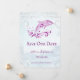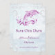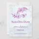 Personalise a unique wedding announcement with a Magenta Dolphin Save the Date. Announcement design features a metallic styled dolphin against a muted ocean waves background adorned with elegant scrolls and text you can personalise with your wedding date details. Additional save the date announcement available for this design in a variety of colours.