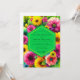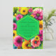 This vibrant design bursts with an abundance of colorful blossoms, featuring rich magenta, sunny yellow, and pops of green foliage. The artwork evokes a joyous and abundant feeling, perfect for a lively occasion.