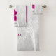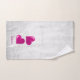 Add an elegant touch to your bath with a Magenta Hearts Personalised Bath Towel Set. Towel set design features a a pair of hearts, a soft white leafy vine against a light grey grunge background with an area to personalise with your name. Additional gift items available with this design as well as a variety of colours.
