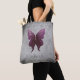 Carry all of your items when you're on the go with a Jewelled Butterfly Tote. Tote design features a vibrant jewelled butterfly against an elegant vintage grey damask pattern. Additional gift items available with this design as well.