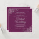 These beautiful invitations are designed specially for couples who have decided to bring their wedding celebrations online. Features an elegant square design with grey text and silver grey lacy floral curls and swirls and a cassis purple, magenta or berry coloured background. Just because the pandemic forced you to re-think the celebration, doesn't mean you can't have beautiful initiations.
