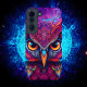 Enchanting owl radiating magenta magic with swirling patterns that seem to cast spells with every glance.