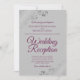 This simple invitation is designed for guests invited to the reception but not the wedding ceremony itself. It features an elegant and stylish design with fancy magenta, cassis purple, or berry coloured script lettering on a grey background and ornate silver grey faux foil curls and swirls in the corners. Beautiful way to invite your friends and family to celebrate with you!