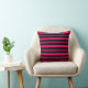 This dark cotton pillow features alternating pink and black horizontal striped pattern.