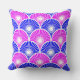 Magenta Pink Blue Chinese Semi Circle Wave pattern Cushion